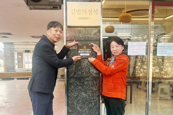이번에 수여된 현판에는 ‘1회용품 사용 줄이기 환경우수업소’라는 문구와 업소명인 ‘김밥의 정석’이 표기되어 지역사회 내 친환경 실천의 모범이 될 예정이다.