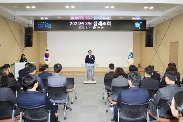 | ▲ 함양군 3월 정례조회 개최(사진=함양군) |