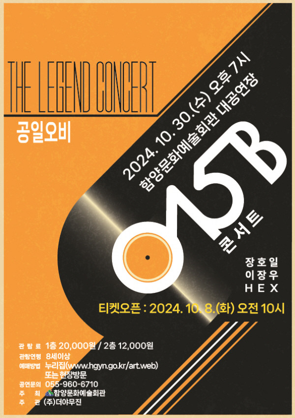 티켓 예매는 오는 8일(화) 10시부터 온라인(인터파크 및 함양문화예술회관 홈페이지, 10월 29일까지) 및 현장결제(문화예술회관 1층, 10월 30일 공연전까지)가 가능하며, 관람료는 1층 20,000원, 2층 12,000원이며 8세 이상 관람이 가능하다.