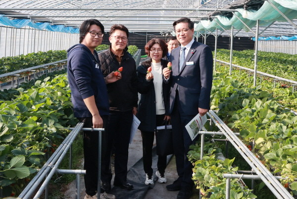 이날 김명수 원장과 함께 진병영 함양군수도 농장을 찾아 딸기 영농 현장의 동향에 대해 살펴보고, 선진 원예기술에 대해 의견을 나눴다.