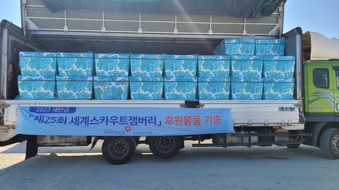 [전남=프레스뉴스] 강래성 기자= 국민건강보험공단 광주전라제주지역본부(본부장 최옥용)는 2023 새만금「제25회 세계스카우트잼버리」조직위원회에 온열질환 예방을 위한 구호물품을 긴급 지원하였다.