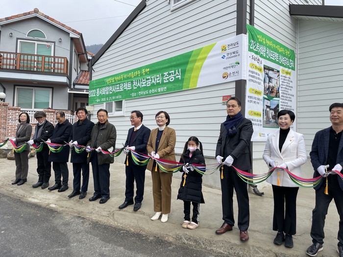 [전남=프레스뉴스] 강래성 기자= 전라남도는 지난 21일 순천 별량면에서 동서화합 천사 프로젝트 추진위원, 전남도.순천시 관계자 등이 참석한 가운데 ‘천사보금자리 제7호’ 준공식을 개최했다.