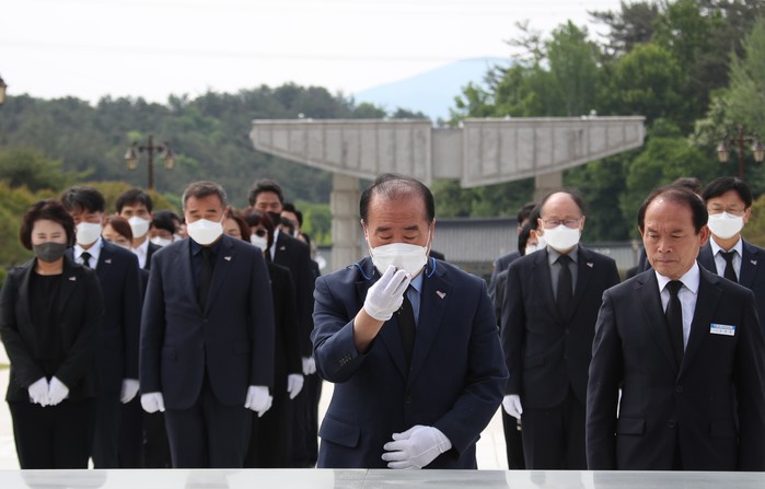 [광주=프레스뉴스] 강래성 기자= 장휘국 광주시교육감과 시교육청 간부 40여 명이 제42주년 5·18민주화운동 기념일을 앞둔 11일 오전 국립 5·18민주묘지와 망월동 민족민주열사묘역을 참배했다.