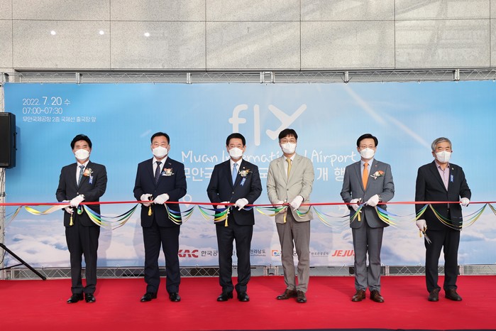 기념행사에는 김영록 도지사와 김산 무안군수, 김경현 무안군의회 의장, 신용구 한국공항공사 항공사업본부장, 김이배 제주항공 대표이사, 전남도와 무안군 관계자 등이 참석했으며, 행사 참석자들은 기장과 승무원들에게 꽃다발을 전달하며 국제선 재취항을 축하했다.