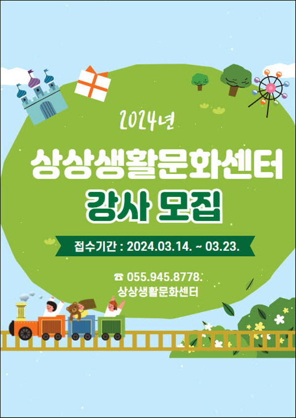 자세한 모집 관련 내용은 거창군 홈페이지에서 확인할 수 있으며, 지원서 제출 및 기타 궁금한 사항은 상상생활문화센터(☎945-8778)로 문의하면 된다.