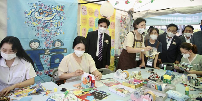 ‘도서관 마당’은 전라남도교육청 소속 도서관, 학교도서관, 지차체 도서관과 독서단체, 출판사 등이 설치한 55개의 체험부스에서 다양한 체험활동이 이뤄졌다.