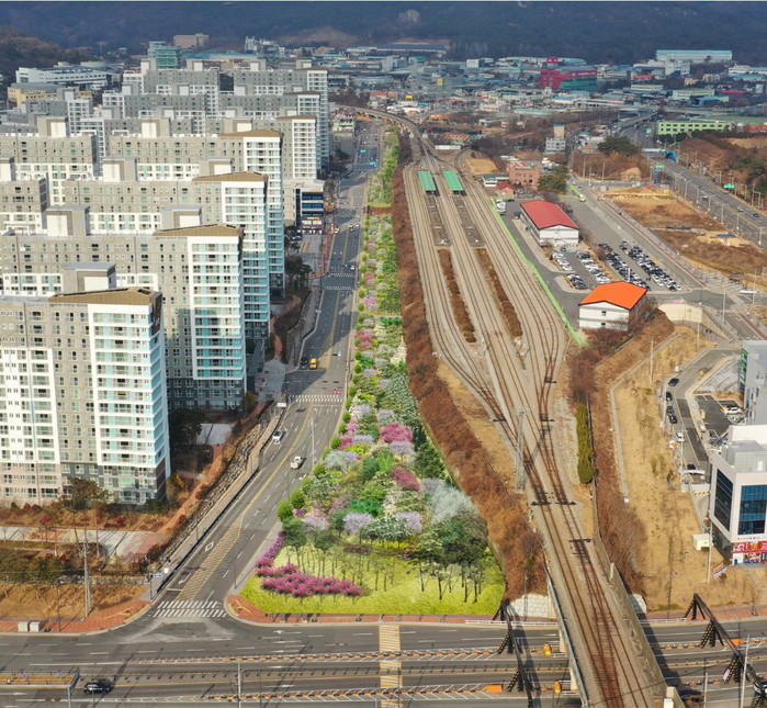 숲에는 사계절 미세먼지 차단 기능과 함께 경관도 고려해 소나무, 가시나무, 아왜나무 등 상록수목과 이팝나무, 느티나무, 대왕 참나무 등 잎이 커 미세먼지를 차단·흡수 효과가 높은 낙엽수목 등 3만 여 그루를 심을 계획이다.