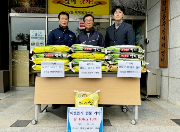 | ▲ 함양군태권도협회 함양읍에 현물 기탁(사진=함양군) |