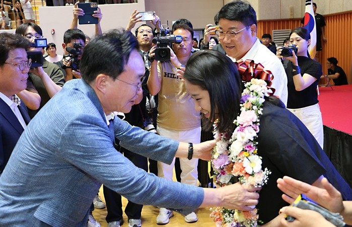 윤병태 시장은 환영사를 통해 “안세영 선수는 단순히 금메달을 딴 것이 아니라 불합리한 체육계의 구조에서 역경을 이겨내고 금메달을 따낸 것”이라고 말했다.