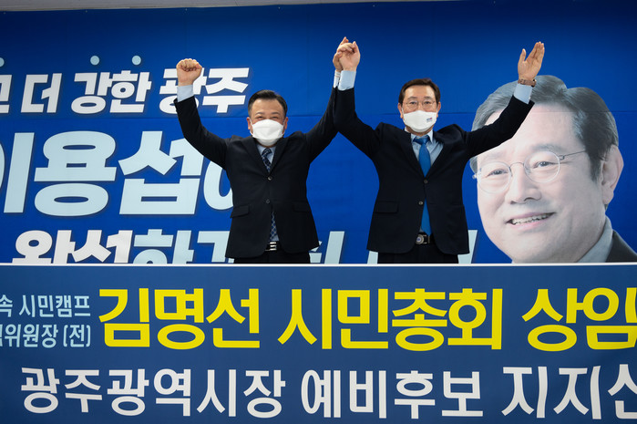 [광주=프레스뉴스] 강래성 기자= ‘이재명의 사람’으로 불리는 김명선 시민총회 상임대표가 이용섭 광주광역시장 예비후보 지지를 선언했다.