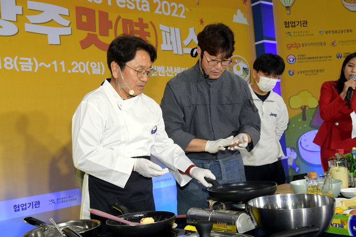 특별행사 진행된 오세득 셰프의 쿠킹콘서도 진행됐다. 강기정 시장도 함께 참여해 광주의 대표음식인 떡갈비를 요리해 방문객들에게 제공했다.