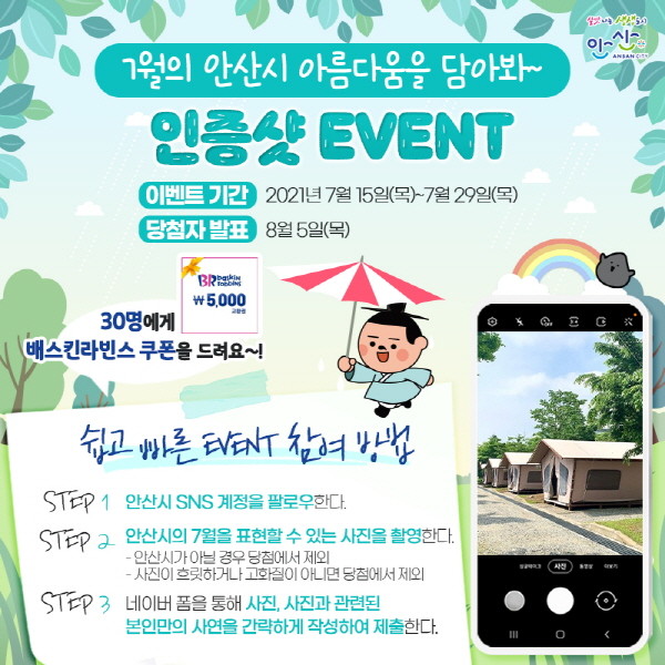 | ▲ ‘7월의 안산시 아름다움을 담아봐’인증샷 이벤트 포스터(사진=안산시) |
