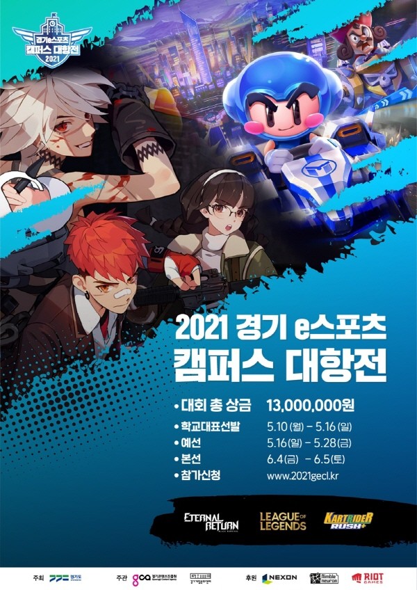 본선 경기는 6월 4일 오후 1시부터 5일 오후 8시까지 2일간 경기콘텐츠진흥원 유튜브 채널과 아프리카TV에서 생중계될 예정이다. 포털 검색창에 ‘2021 경기e스포츠캠퍼스 대항전’을 검색하면 본선일정 등 자세한 사항을 확인할 수 있다.