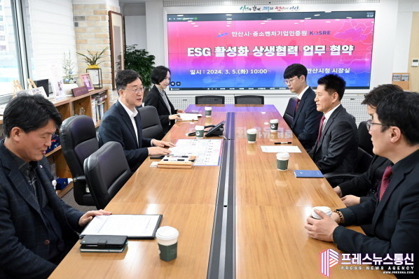 [프레스뉴스] 장현준 기자= 안산시(시장 이민근)는 지난 5일 중소벤처기업인증원과 ESG(환경·사회·지배구조) 경영 활성화를 위한 업무협약을 체결했다고 6일 밝혔다.