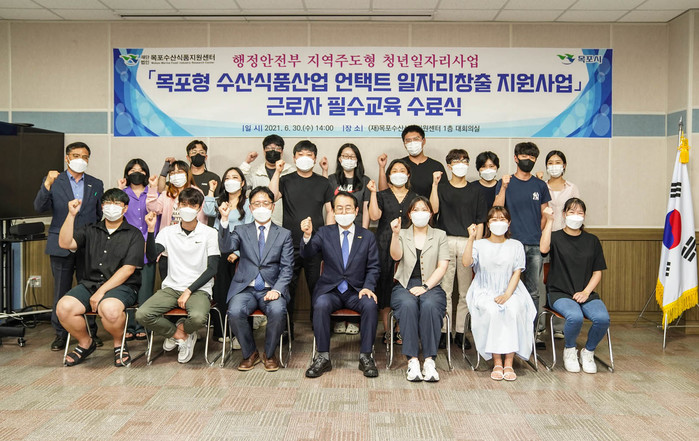 [전남=프레스뉴스] 강래성 기자=목포시가 지난 6월 30일 목포수산식품지원센터(센터장 이영철)에서 ‘2021 지역주도형 목포형 수산식품산업 비대면 청년일자리창출 지원사업’ 교육 수료식을 개최했다.