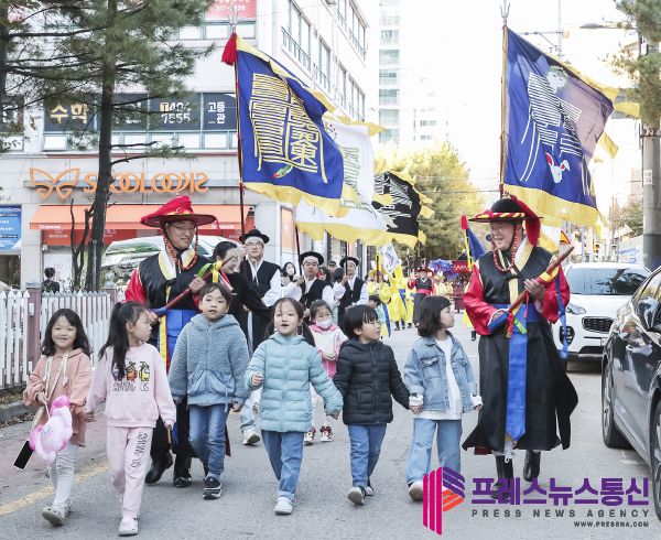 | ▲2023 인선왕후축제 ‘인선왕후 가례의식’. 임병택 시흥시장과 아이들이 함께 행진하고 있다.(사진=시흥시) |
