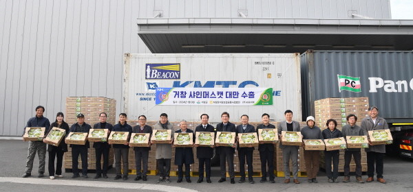 이날 선적된 물량은 17브릭스(Brix) 이상의 고품질 샤인머스캣 4.5톤, 5천 2백만원 상당으로 수출업체 ㈜리하이텍을 통해 대만으로 수출되어 현지 소매 및 마트 등에 납품된다.