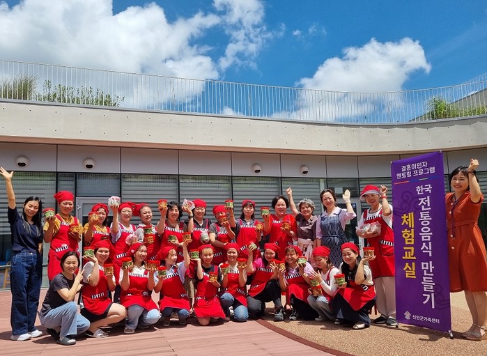 [전남=프레스뉴스] 강래성 기자= 신안군(군수 박우량)은 25일 결혼이민자들의 한국정착지원을 위하여 새마을 문고회 회원 12명을 포함한 총 24명이 신안군 가족센터에서 함께 전통문화체험 및 한국 음식으로 건강한 여름나기 프로그램을 추진했다.