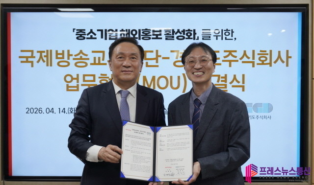 [프레스뉴스] 강보선 기자= 경기도주식회사는 14일 서울시 아리랑타워에서 국제방송교류재단 아리랑TV와 ‘2026년도 경기도 내 중소기업 해외홍보·마케팅을 위한 업무협약’을 체결했다.