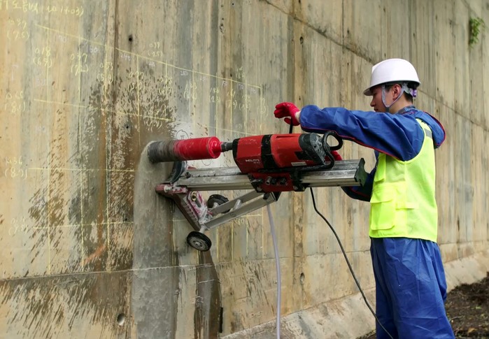 | ▲농어촌공사는 시설물점검119센터를 운영하며 365일 상시전문기술을 무상으로 제공하고 있다(사진은 저수지 방수로 옹벽 콘크리트 코어채취 모습) 사진=농어촌공사 제공 |