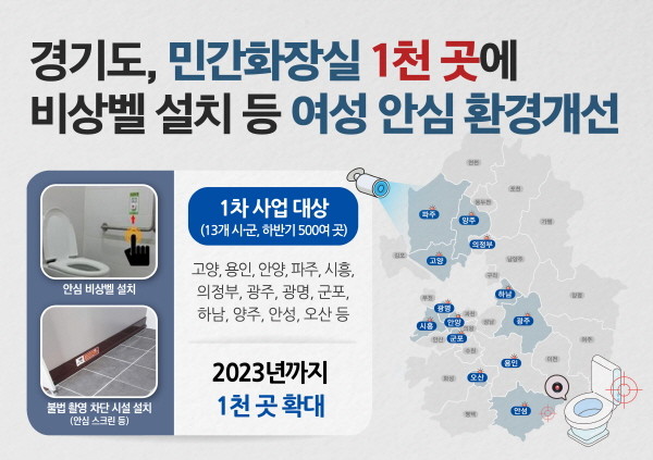 도는 1차 사업에 이어 2023년까지 31개 시·군 전체 민간화장실 1,000곳에 안심비상벨을 설치하는 등 도내 전역을 대상으로 사업을 완료할 예정이다.