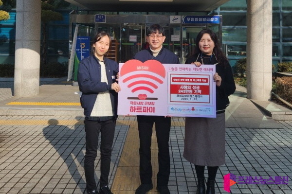 [프레스뉴스] 장현준 기자= 안산시(시장 이민근)는 지난 12일 제이피아이 헬스케어(대표 김진국)로부터 관내 어려운 이웃을 위한 사랑의 후원금 243만원을 기탁 받았다고 15일 밝혔다.