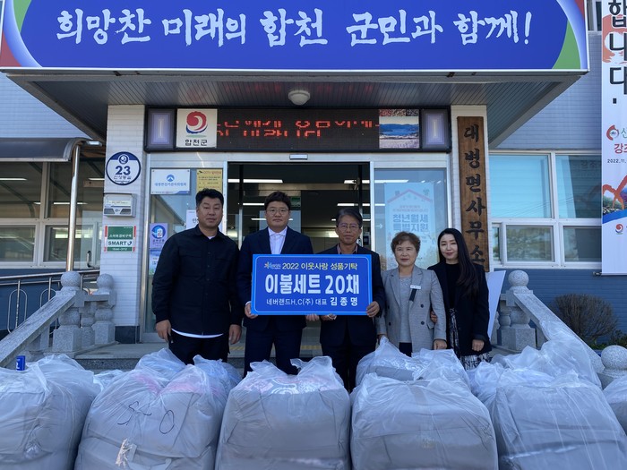 [프레스뉴스] 정재훈 기자= 네버랜드 H.C(주), ㈜합천호워터월드 풀헤븐 수상레저가 지난 4일 지역사회의 어려운 이웃에게 따뜻한 사랑을 전하고자 대병면에 겨울이불 50채[네버랜드 H.C(주) 20채, ㈜합천호워터월드 풀헤븐 수상레저 30채]를 기탁했다.