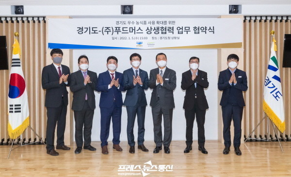 [프레스뉴스] 장현준 기자= 경기도는 풀무원 계열 식자재 유통기업 ㈜풀무원푸드머스(이하 ‘㈜푸드머스’)와 지난 5일 경기도청에서 도 생산 우수 농식품 사용 확대를 위해 상생협력 업무협약을 체결했다고 6일 밝혔다.