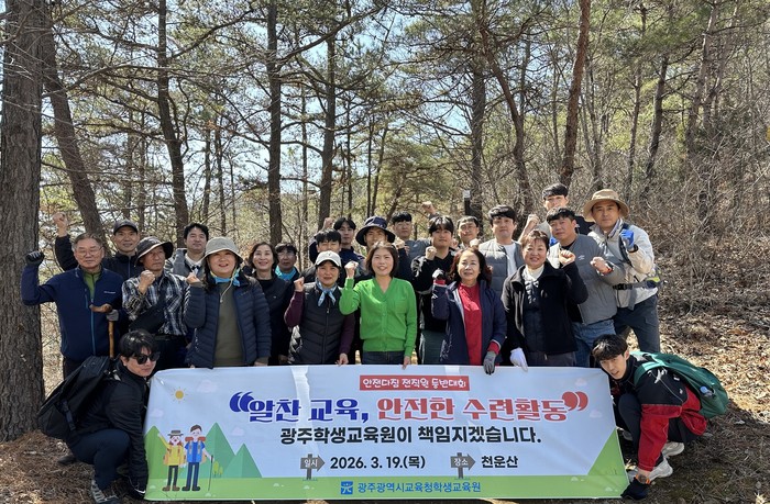 [광주=프레스뉴스] 강래성 기자= 광주시교육청학생교육원(이하 학생교육원)은 19일 학생 수련활동이 예정된 화순 천운산 등산로 일대를 점검했다.