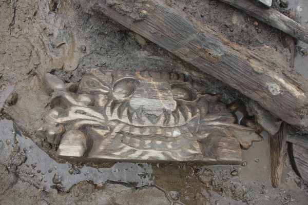 | ▲ 국청사 월영루지 축대 아래에서 확인된 목부재(사진=경기도) |