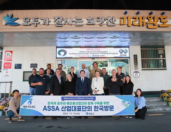 군 관계자에 따르면 지난 13일 ASSA 산업대표단의 Jo Kelly 대표 등 관계자 15명이 완도의 해조류 양식장과 관련 시설을 방문했다고 밝혔다.