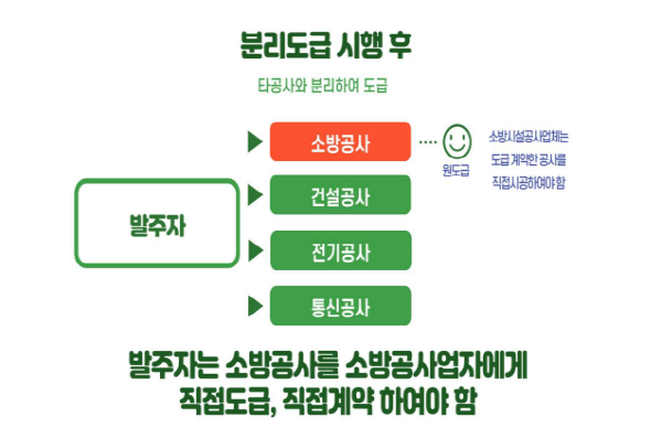 지난해 9월부터 시행된 소방시설공사업법에 따라 소방시설공사는 건축공사 등 다른 공사와 분리해 도급해야 하기 때문이다. 즉 A건축주는 B종합건설사가 아닌 소방시설공사업 면허가 있는 업체와 직접 도급 계약을 맺었어야 했다.
