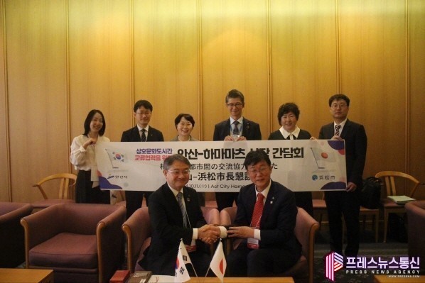 | ▲이민근 안산시장이 나카노 유스케 하마마츠 시장과의 간담회를 가졌다.(사진=안산시) |