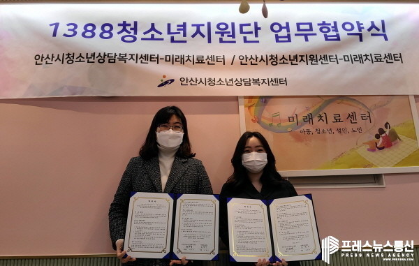 [프레스뉴스] 장현준 기자= 안산시(시장 윤화섭) 청소년상담복지센터는 미래치료센터(원장 김찬미)와 청소년 안전망 구축 협약을 맺고, 위기 청소년 지원을 위해 함께 힘을 모으기로 했다고 18일 밝혔다.