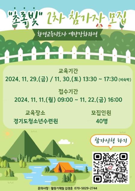 | ▲환경교육지도자 역량강화과정 ‘초록빛(2차)’ 참가자 모집 포스터(사진=경기도미래세대재단) |