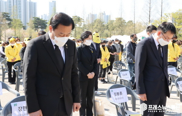 [프레스뉴스] 김대일 기자= 장현국 경기도의회 의장(더민주, 수원7)은 16일 오후 안산 화랑유원지에서 열린 ‘세월호 참사 8주기 기억식’에 참석해 희생자를 추모했다.