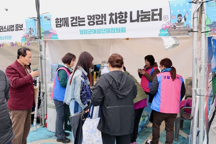 [전남=프레스뉴스] 강래성 기자= 영암군 여성단체협의회가 왕인문화축제 기간 동안 ‘차향나눔터’를 운영하며 방문객들에게 따뜻한 나눔을 전했다.