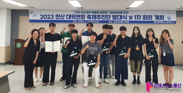 [프레스뉴스] 장현준 기자= 안산시(시장 이민근)는 오는 10월 28일 와~스타디움에서 개최되는 ‘5개 대학 어울림 한마당’의 성공적 개최를 위해 안산 대학연합 축제추진단 발대식을 열었다고 14일 밝혔다.