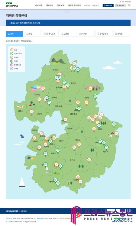 [프레스뉴스] 장현준 기자= 경기도에서 운영 중인 56개 공공캠핑장의 위치와 편의시설 정보를 한 번에 확인할 수 있는 서비스가 28일부터 시작된다.