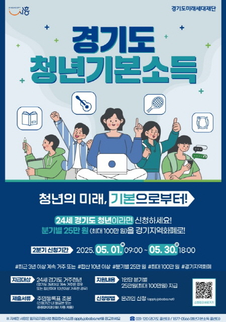 청년기본소득은 24세 청년에게 분기별 25만 원씩, 4분기에 걸쳐 최대 100만 원을 지역화폐로 지급하는 청년 지원 정책이다.