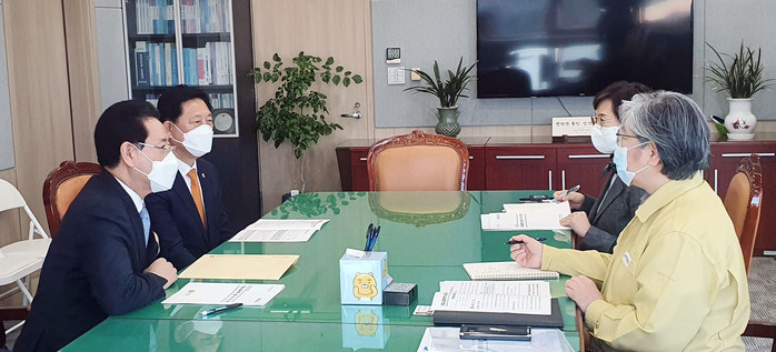 [전남=프레스뉴스] 강래성 기자= 김영록 전라남도지사와 김한종 도의회 의장은 24일 질병관리청을 방문, 정은경 청장을 만나 국립심뇌혈관센터 설립의 필요성을 설명하고 신속 추진을 건의했다.