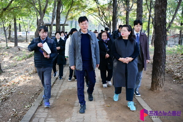 이날 이민근 시장은 원고잔공원 일대 현장을 방문해 ▲원고잔공원 명품화 사업 ▲인도 주변 도로 우레탄 포장 및 조명 설치 ▲원고잔공원 진입로 및 경사로 개선사항 점검 등 공원 관련 주민의 불편 사항 및 건의 사항에 대한 추진계획 등을 공유하고 다양한 해결방안을 논의했다.
