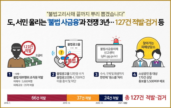 | ▲ 경기도, 서민 울리는 ‘불법 사금융’과 전쟁 3년…127건 적발·검거 그래픽자료(사진=경기도) |