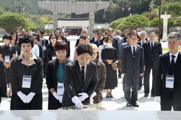| ▲김대중 전남교육감, 미 캘리포니아주 5.18기념일제정 준비위와 함께 국립 5.18묘지 참배/전남교육청 제공 |