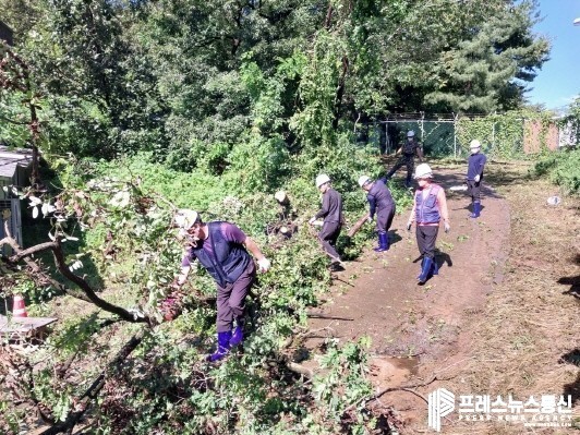 | ▲ 안산시가 지난 6일 태풍 힌남노로 쓰러진 선부동 일원 수목들을 복구하고 있다.(사진=안산시) |