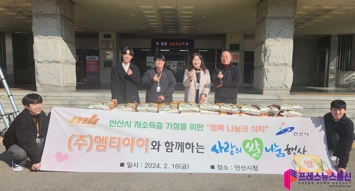 [프레스뉴스] 장현준 기자= 안산시(이민근 시장)는 지난 16일 ㈜엠티아이(대표 박성균)로부터 관내 저소득 소외계층을 위한 사랑의 쌀 10kg 100포를 기탁받았다고 19일 밝혔다.