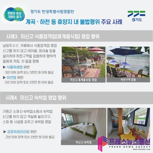| ▲ 계곡·하천 등 휴양지 내 불법행위 주요 사례 이미지(사진=경기도) |
