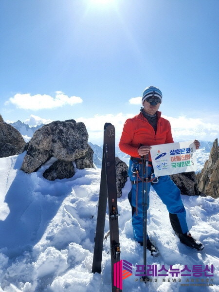 강 대장은 현지시간으로 14일 오전 9시 프랑스 샤모니 그랑모테에서 산악스키를 이용해 알프스 아르장티에르 빙하와 투르 빙하를 횡단한 뒤 스위스와 맞닿는 국경지대에서 ▲상호문화도시 ▲아동친화도시 ▲국제안전도시 문구가 적힌 안산시 깃발을 흔들었다.