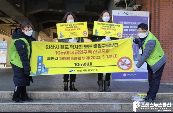 [프레스뉴스] 장현준 기자= 안산시(시장 윤화섭) 단원보건소는 간접흡연으로부터 시민들의 건강을 보호하기 위해 이달 말까지 전철역 출입구 주변 흡연에 대한 특별단속을 실시한다고 5일 밝혔다.