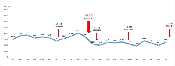 그 결과 지정 후인 2020년 8월부터 2021년 6월까지 임야 지분거래량은 2만5,483건으로 지정 11개월 전인 2019년 9월부터 2020년 7월까지 3만7,156건 대비 1만1,673건(31.4%)이 감소한 것으로 조사됐다.